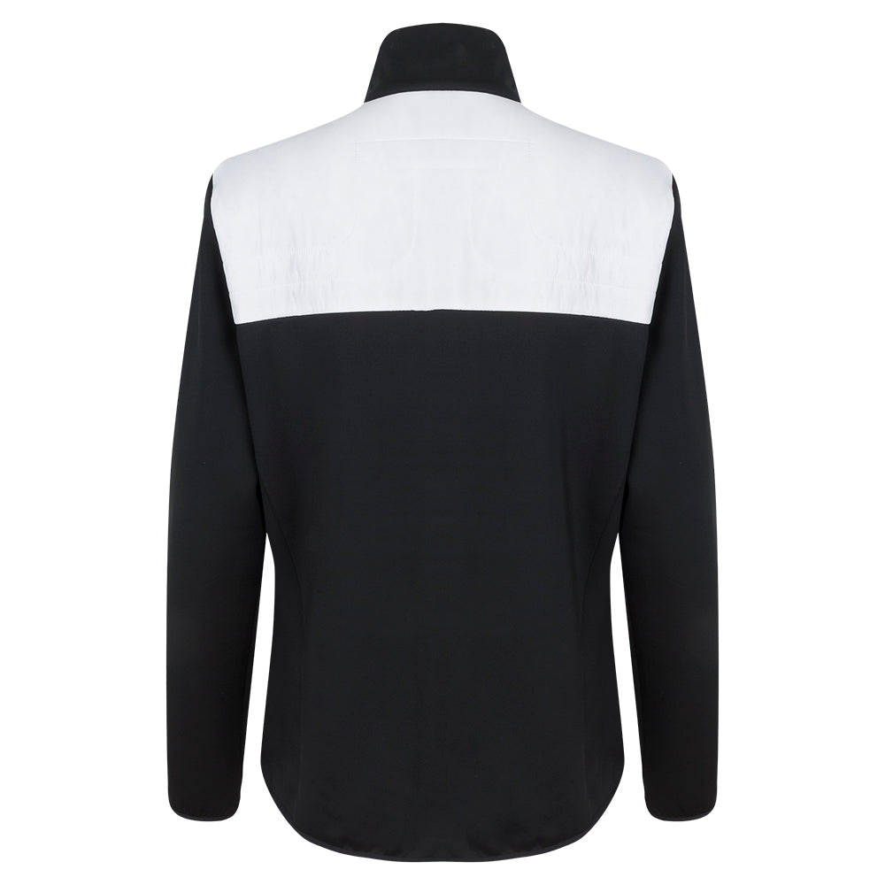 Unveiling the Martina Hybrid Jacket from J.Lindeberg, crafted from double jersey material. The contrasting color recycled PrimaLoft branded padding on the chest and shoulders is not only soft, stretchy, and fast drying, but it also provides a distinctive look to the piece. It features a two-way Vislon front zipper with logo pullers, elastic logo binding, and adorned silicone Bridge print for a signature touch.