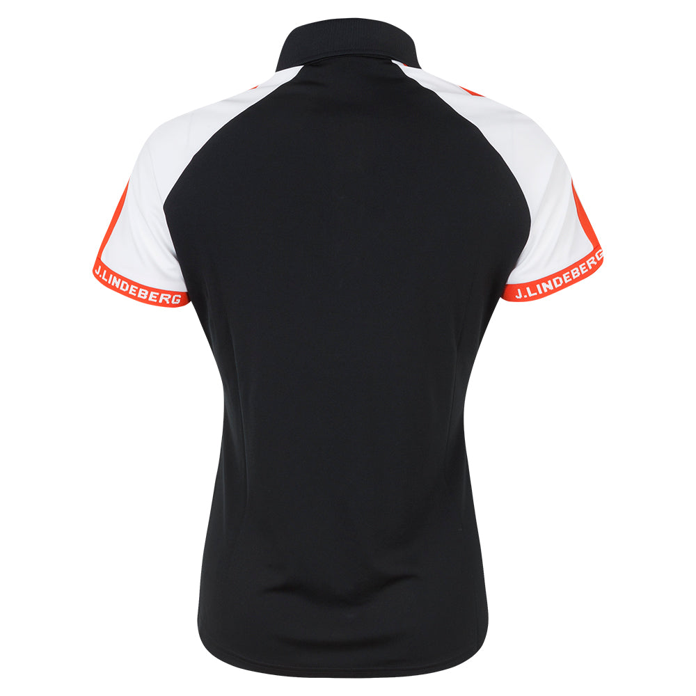 The Perinne ladies golf polo from J.Lindeberg is an eye-catching piece that can be worn all year round and its versatility means it can be worn with shorts, skorts or trousers. With strong J.Lindeberg branding and eye-catching colour blocking, the Perinne has been crafted from functional TX Jersey, a fast dry, moisture wicking fabric with 4 way stretch for high comfort whilst not compromising freedom of movement when swinging.